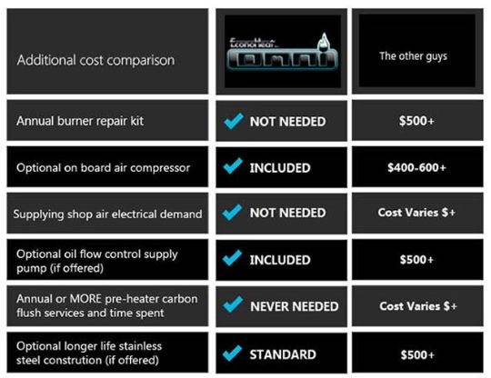 Omni offers the largest selection of UL and CUL listed Waste Oil Heaters & Boilers in the industry. Our high grade stainless steel heat exchangers and cast iron boilers are built to last and backed by a warranty to match. If you need a high-output, low maintenance heater or boiler, that will eliminate your heating costs, used oils and hauling fees, we have the solution.